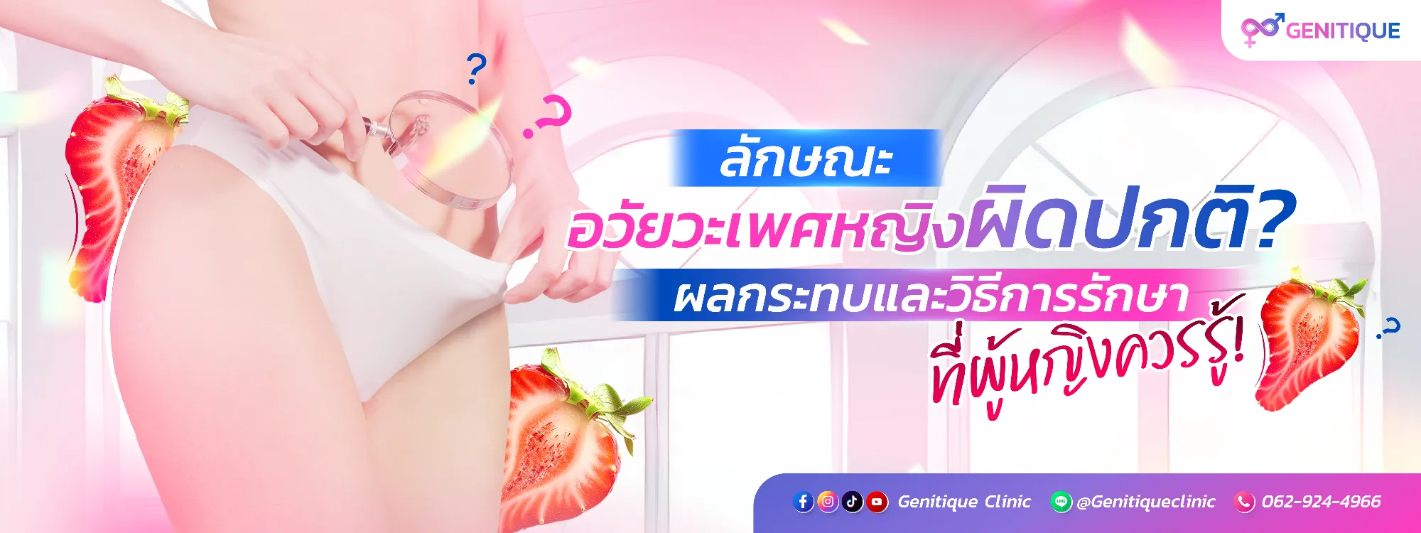 ลักษณะอวัยวะเพศหญิงผิดปกติ ทั้งในด้านรูปลักษณ์ หรือระบบการทำงาน โดยมากแล้วเป็นเรื่องปกติที่เกิดขึ้นตามธรรมชาติเมื่อถึงช่วงวัยหนึ่ง การทำความเข้าใจด้วยข้อมูลที่ถูกต้อง ภาวะดังกล่าวไม่ใช่เรื่องที่น่ากังวลใจแต่อย่างใด อย่างไรก็ตามหากความผิดปกติสร้างความเจ็บปวด หรือรบกวนการใช้ชีวิต Genitique clinic ขอแนะนำให้เข้ารับการรักษาโดยแพทย์เฉพาะทาง เพื่อความปลอดภัยและผลลัพธ์ที่เป็นไปตามความคาดหวัง